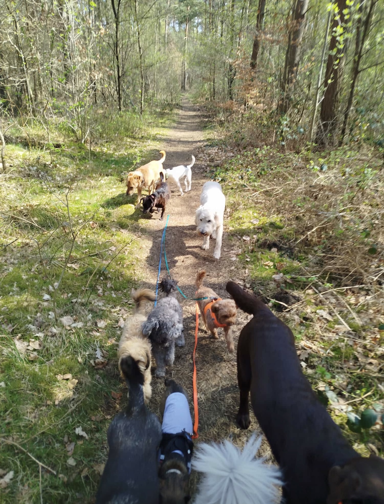 Der eine marschiert gerne voraus, schnüffelt und schaut, wer vorher da ging. Der andere bleibt nahe beim Rudelführer Mensch, während ein anderer nach hinten absichert und darauf achtet, dass alle dabei sind und bleiben. Diese Aufgaben zu übernehmen und auszufüllen, stärken das Selbstbewusstsein der Hunde und bringen Freude.
